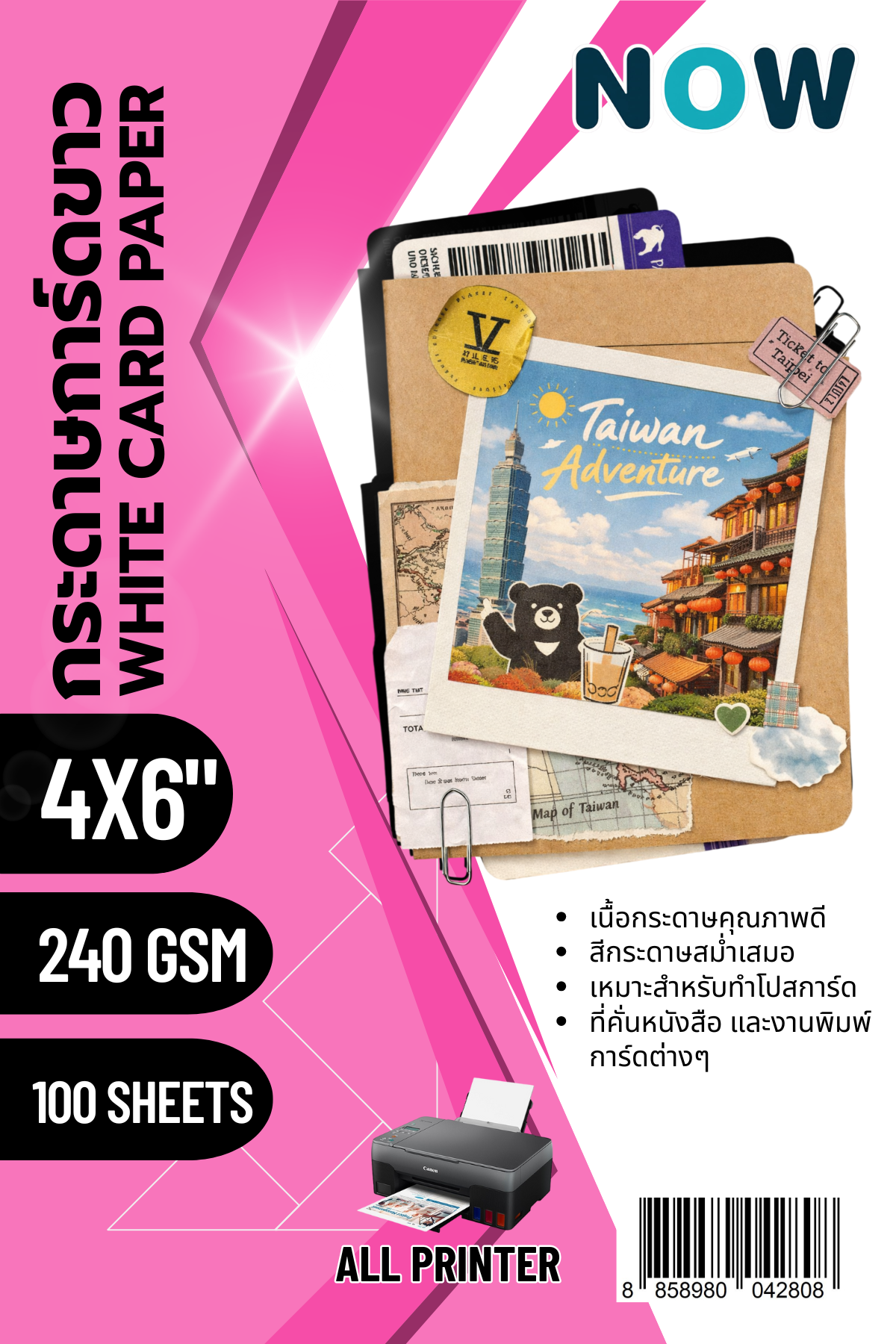 กระดาษ การ์ดขาว ขนาด 4*6นิ้ว หนา 240 แกรม ( 10.16 x 15.24 CM.) พื้นผิวเรียบ บรรจุ 100 แผ่น