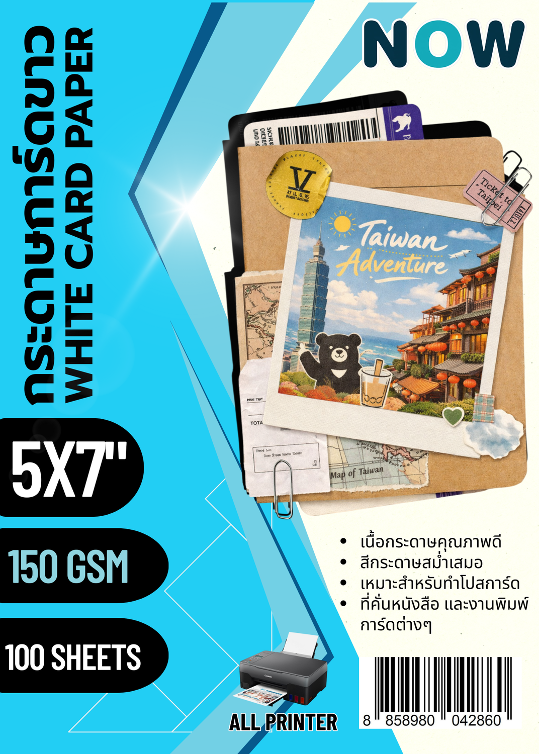 กระดาษ การ์ดขาว ขนาด 5*7นิ้ว หนา 150 แกรม ( 12.7 x 17.8 ซม.) พื้นผิวเรียบ บรรจุ 100 แผ่น