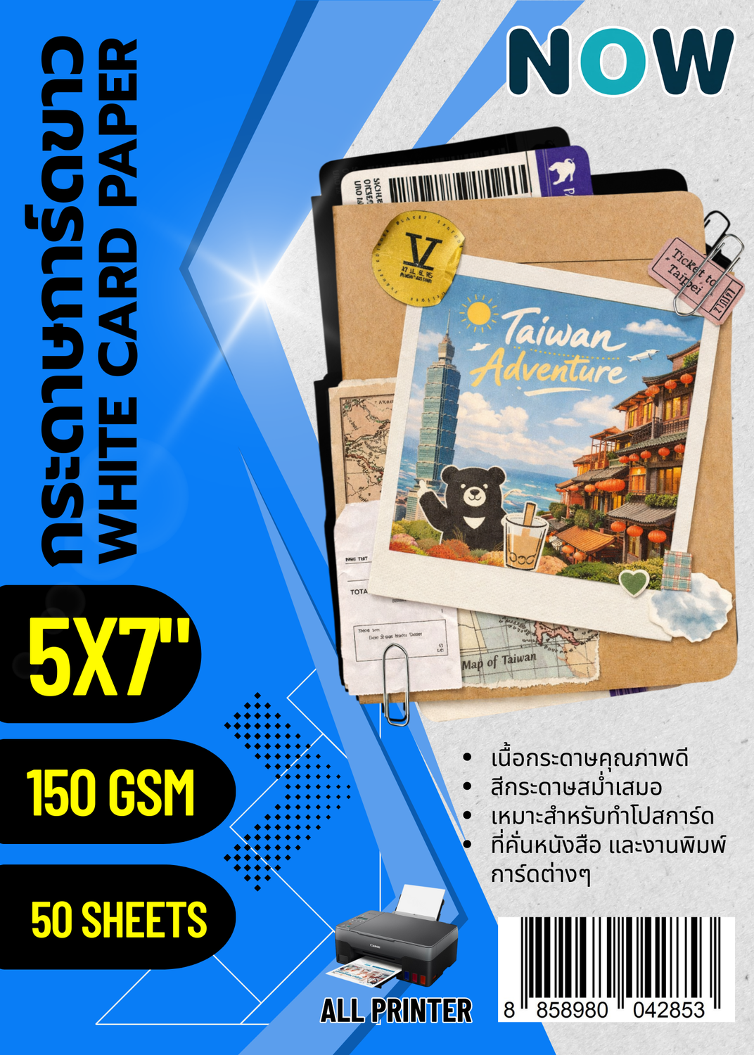 กระดาษ การ์ดขาว ขนาด 5*7นิ้ว หนา 150 แกรม ( 12.7 x 17.8 ซม.) พื้นผิวเรียบ บรรจุ 50 แผ่น
