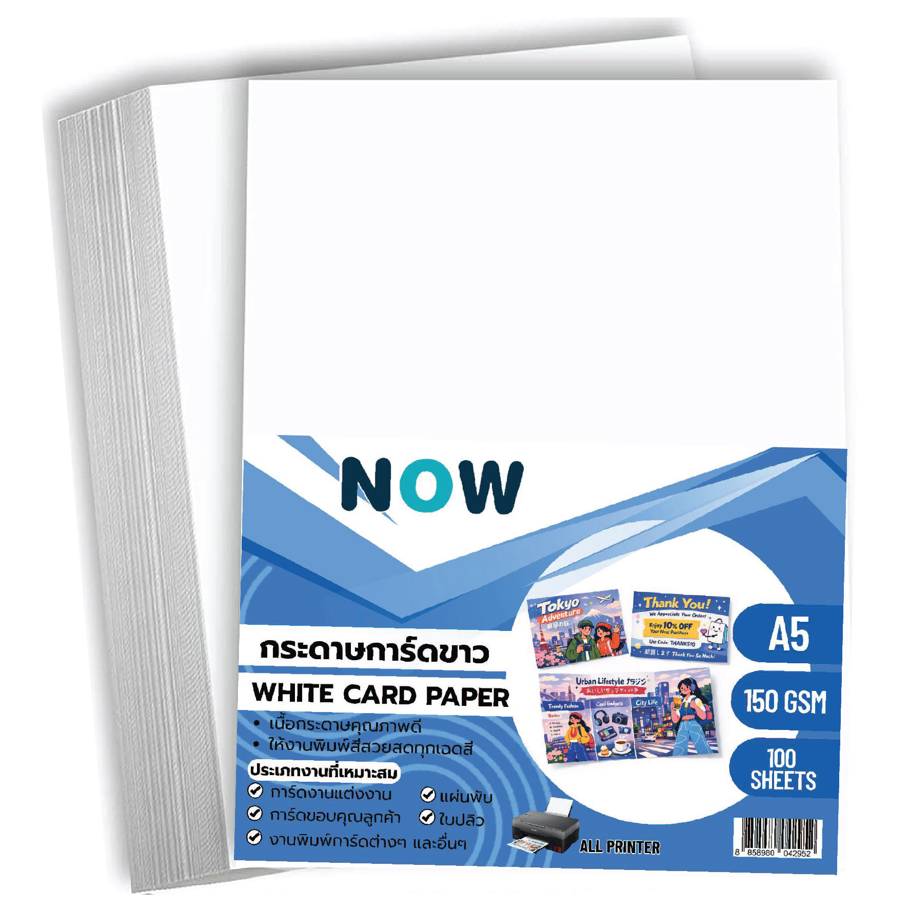 กระดาษ NOW การ์ดขาว A5 หนา 150 แกรม (148 x 210 มม.) พื้นผิวเรียบ บรรจุ 100 แผ่น