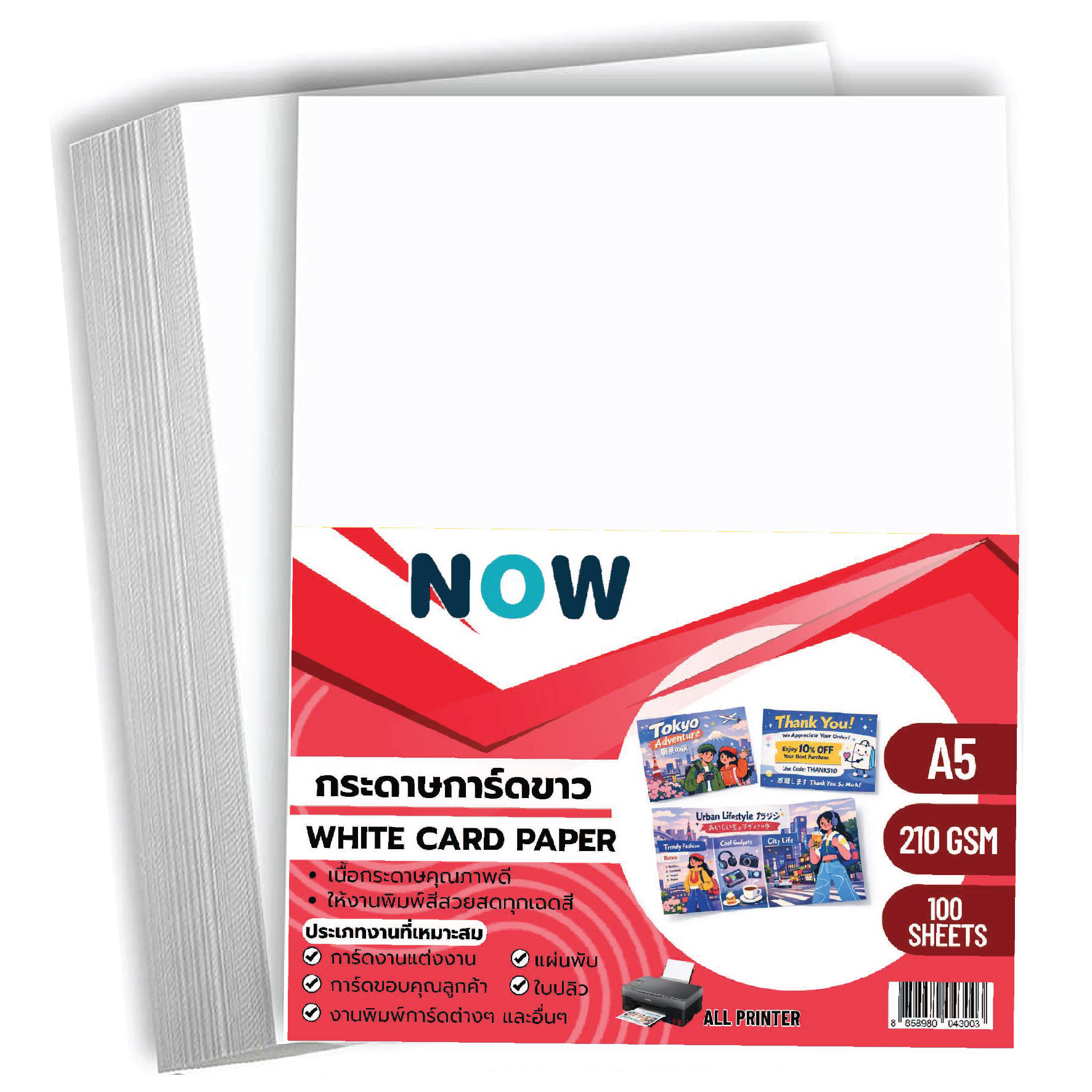 กระดาษ NOW การ์ดขาว A5 หนา 210 แกรม (148 x 210 มม.) พื้นผิวเรียบ บรรจุ 100 แผ่น