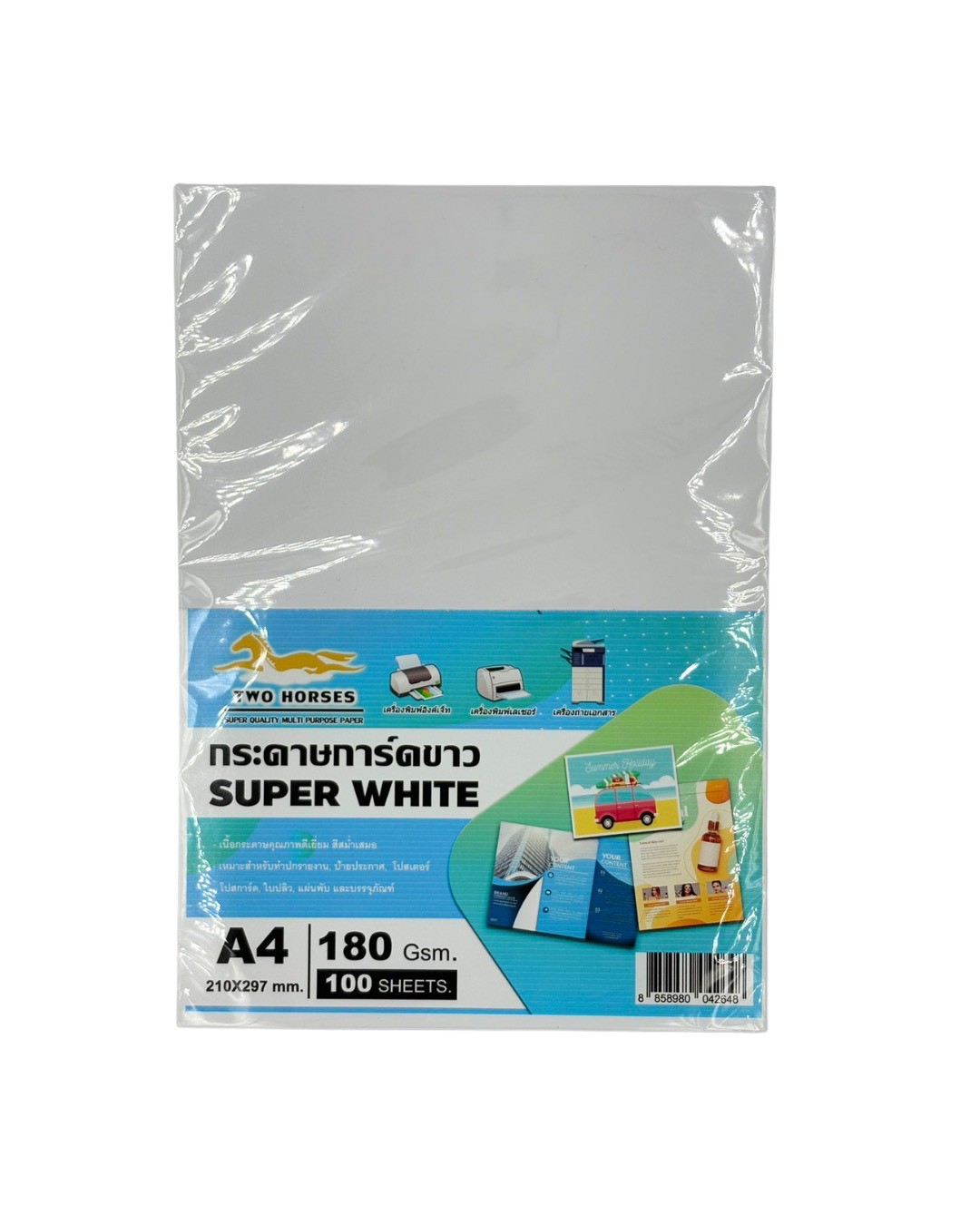 การ์ดขาว Super White ขนาด A4 หนา 180 แกรม ( 210 x 297 มม.) ขาวสว่าง เนื้อเรียบเนียน บรรจุ 100 แผ่น