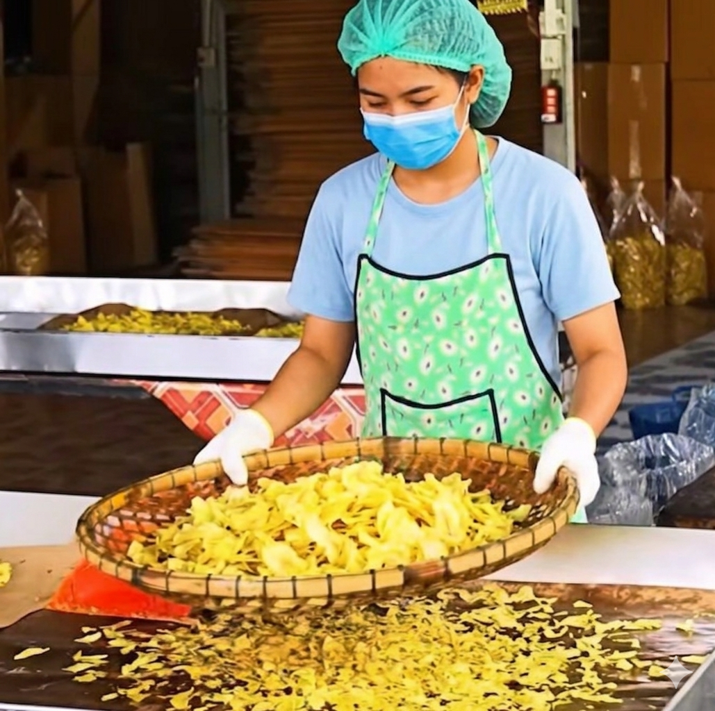 สัมผัสรสชาติความฟินจากสวนเมืองจันท์ ทุเรียนทอดที่คัดเฉพาะทุเรียนหมอนทองแก่จัด นำมาผ่านกรรมวิธีทอดแบบดั้งเดิมและเทคนิค "อบไล่น้ำมัน" นานถึง 8 ชั่วโมง เพื่อให้ได้ความกรอบที่ยาวนานและดีต่อสุขภาพมากขึ้น