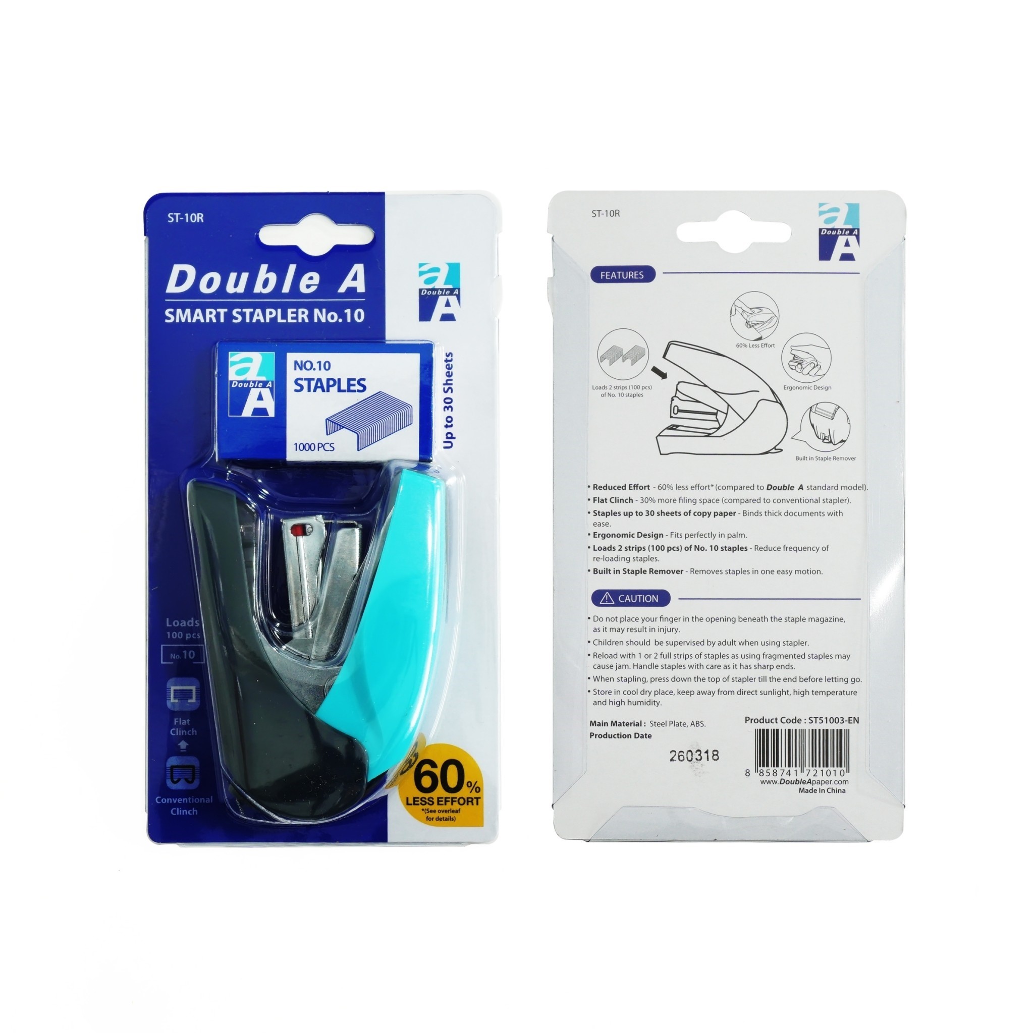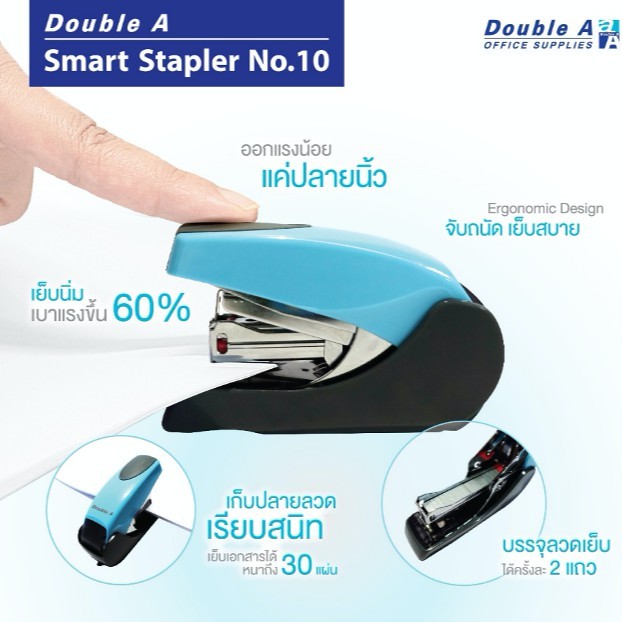 – รุ่น เบาแรงกด – เย็บนิ่ม เบาแรงขึ้น 60% – จับถนัด เย็บสบาย (Ergonomic Design) – เก็บปลายลวดเรียบสนิท – ใช้กับลวดเย็บเบอร์ 10 – เย็บได้หนา 30 แผ่น – มาพร้อมลวดเย็บ ดั๊บเบิ้ล เอ 1000 เข็ม 1 กล่อง – สินค้าคละสี (คละ 4 สี: ดำ, ฟ้า, เหลือง, ขาว) – ขนาด Packaging 14x17x8 cm.