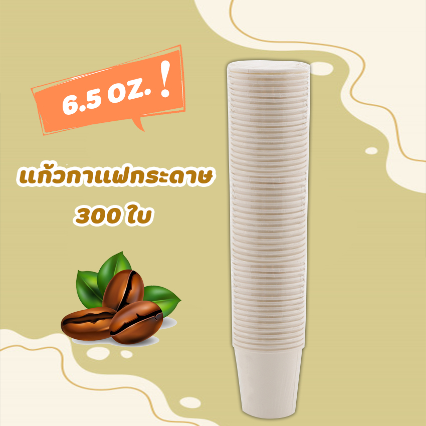 แก้วกระดาษ 6.5 oz. ไม่มีหูจับ (300 ใบ) แก้วกาแฟกระดาษ แก้วใช้ครั้งเดียว แก้วสีขาว
