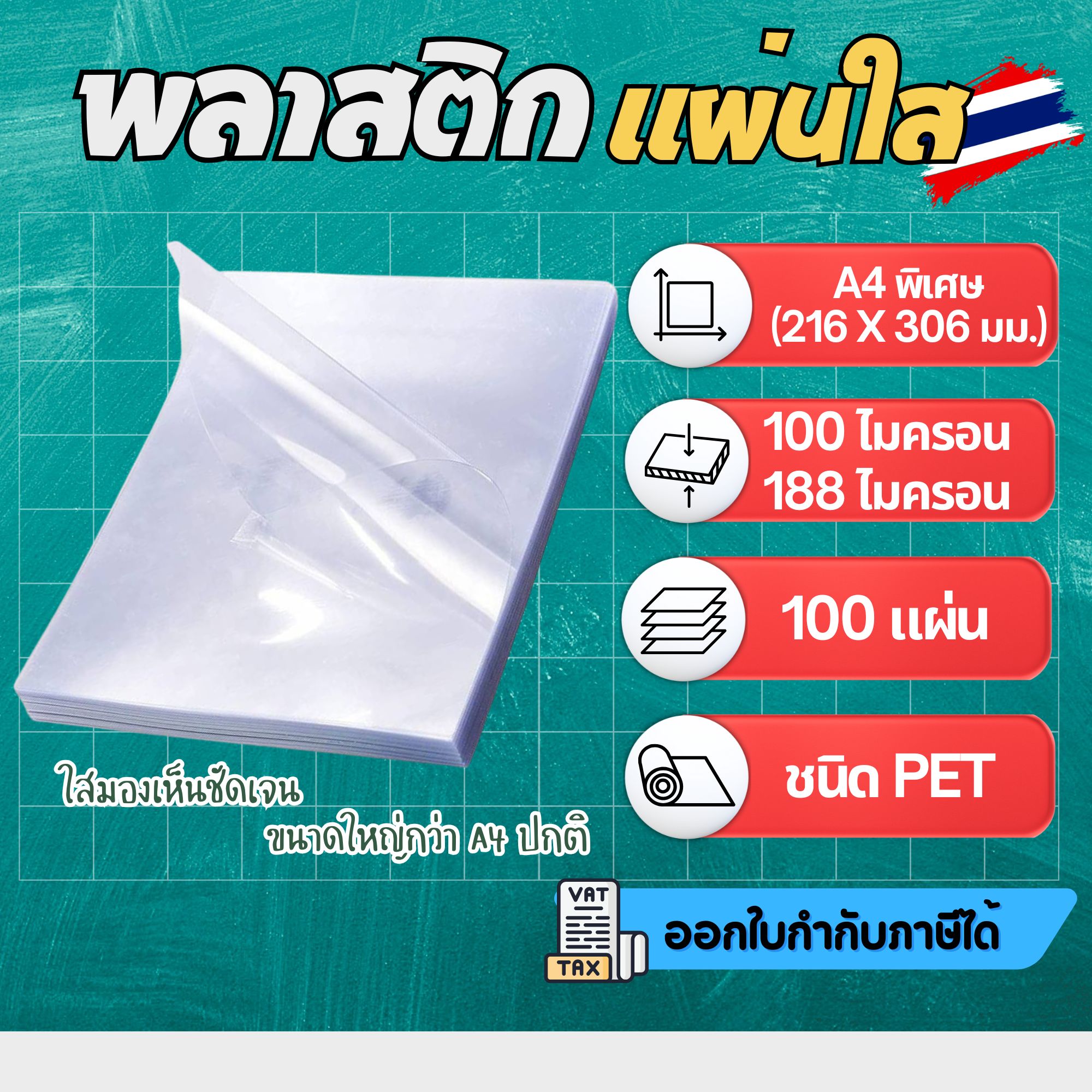 ปกพลาสติก PET แผ่นใส A4Plus+ (216 x 306 มม.) 100 แผ่น หนา 100 ไมครอน